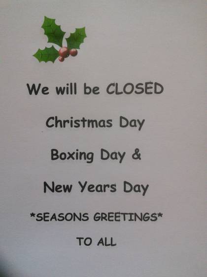 We will be open between Christmas and New Year, but on Christmas Eve we will close a little earlier at 4.15pm - Thanks