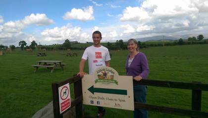#Run Tom Run. Tom having a pit stop for ice-cream at Abbott Lodge Jersey Ice Cream Farm, Penrith. He needs lots of energy to run from Lands End to John O' Groats - raising funds for M.E. and at 18, setting a record!