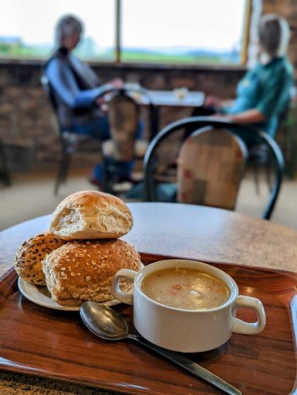 As a trial this winter we are going to serve Soup & a Roll for lunches. If it's chilly out then the fire will be toasty and you can enjoy the view with a hot cuppa. Then finish with a Jersey Ice Cream - perfect